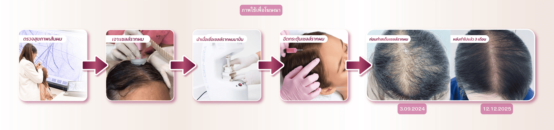 เซลล์ที่ได้จะถูกฉีดกลับเข้าสู่บริเวณที่มีปัญหาผมบาง ซึ่งช่วยกระตุ้นการงอกของเส้นผมใหม่และบำรุงรากผมให้แข็งแรง